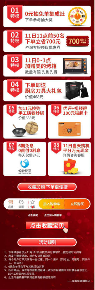 4、雙十一當(dāng)天0-1點(diǎn)下單加贈(zèng)美的小烤箱;