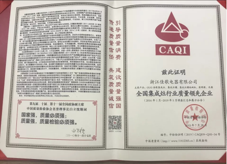 全國集成灶行業(yè)質(zhì)量領(lǐng)先企業(yè)
