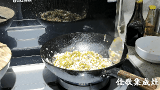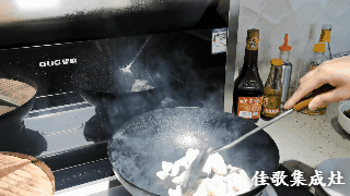 2. 打開佳歌集成灶至大火模式,將豬板油下到熱鍋,煎出豬油備用。佳歌集成灶每分鐘21立方增壓吸力,寬屏攏煙瞬吸即凈,煎炸爆炒無(wú)油煙。