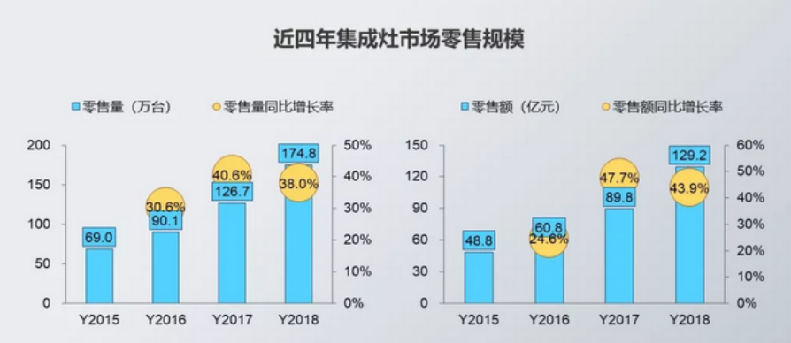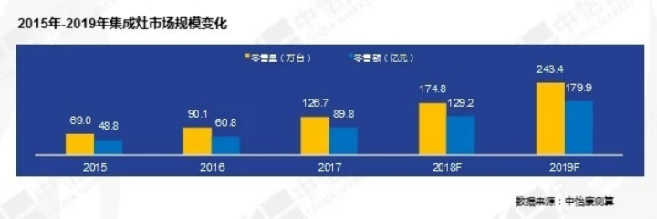 廚電產(chǎn)品作為每個(gè)家庭生活的必需品,目前在800億的廚電市場(chǎng)份額中,集成灶僅僅占據(jù)不到10%的市場(chǎng)份額。在過(guò)去的5年中,每年更是以接近60%的增速高速發(fā)展,其發(fā)展速度遠(yuǎn)遠(yuǎn)超過(guò)建材家居行業(yè)的任何一個(gè)品類(lèi),集成灶市場(chǎng)逐步成熟,市場(chǎng)規(guī)??焖僭鲩L(zhǎng)。