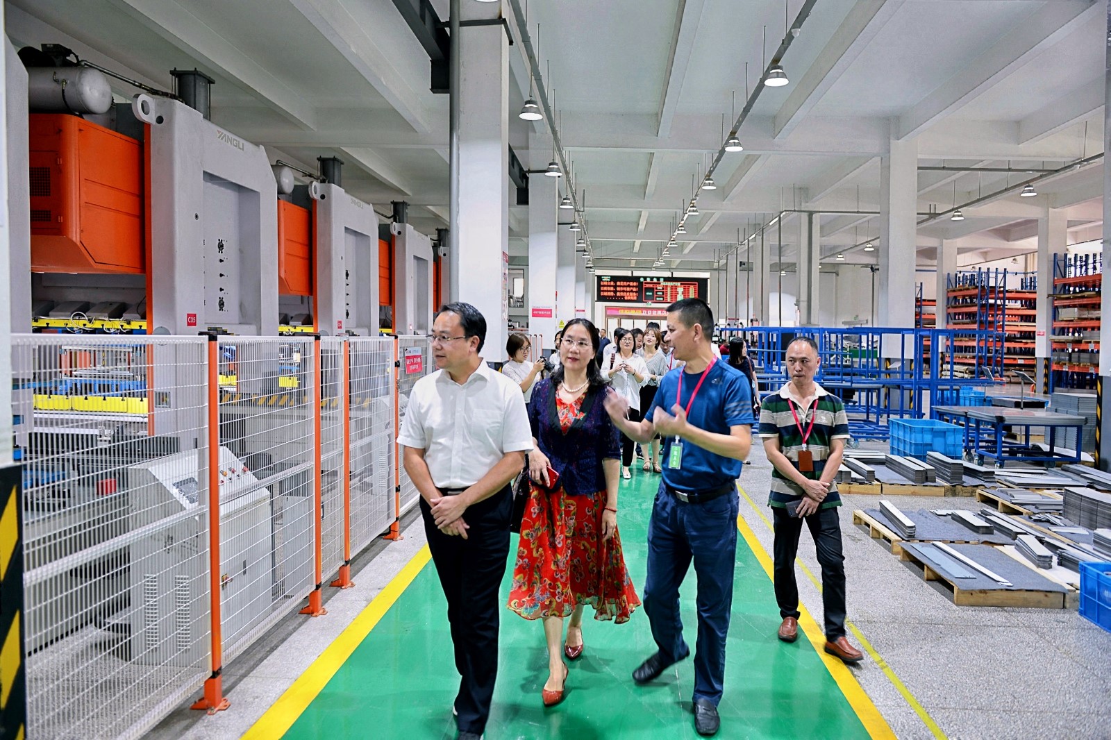 會議結束,嵊州市委常委、副市長梁瑜,中國經(jīng)濟信息社浙江中心主任呂雪輝,京東零售子集團平臺業(yè)務中心總監(jiān)、廠直優(yōu)品計劃負責人何大軍,中國經(jīng)濟信息社新華信用事業(yè)部總經(jīng)理李偉,嵊州市商務局局長錢凱豐等代表一行蒞臨佳歌集成灶,佳歌集成灶董事長袁向東、總經(jīng)理袁海濱、市場部部長過龍超、電商部部長袁航接待并陪同參觀。