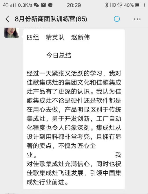 此次培訓(xùn)讓經(jīng)銷商們對未來市場的信心大增,佳歌集成灶也堅(jiān)信,在經(jīng)銷商伙伴們的共同努力下,我們必能走得更遠(yuǎn)。佳歌集成灶和經(jīng)銷商將更凝心聚力、聚勢謀遠(yuǎn),以積極進(jìn)取的心態(tài)進(jìn)行品牌建設(shè),共同發(fā)展,實(shí)現(xiàn)合作共贏!