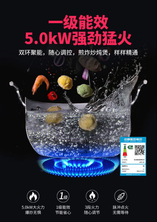 自主研發(fā)設(shè)計雙環(huán)純銅節(jié)能高效燃燒器,額定熱負(fù)荷達(dá)到5.0kW,突破火力臨界點,遠(yuǎn)超國家一級能效標(biāo)準(zhǔn)。
